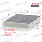PRODUCTS Air Filter OE: 13780-83000 For SUZUKI Air Filter OE: 16546-9S000/16546-9S001/16546-VK500/16546-VK501/16546-VM00A For NISSAN Air Filter OE: 17801-0C040 For Toyota Air Filter OE: 17801-30060 For Toyota Cabin Filter CU27003(23515346, 82354791)For VOLVO Cabin Filter CUK 31 001(74 82 351 184, 23515118)For RENAULT TRUCKS, VOLVO Cabin Filter CUK2184, 20409908 For VOLVO Cabin Filter VOE84813190,CU27023 Fuel Filter FF5159 For MAZDA, TOYOTA(P550385,WK828x)Spin-on fuel-water separator Fuel Filter OE: 600-311-8331 For KOMATSU(P550105, FF5578,WK9150) Fuel Filter WK715/1x (P551039, FS19581)